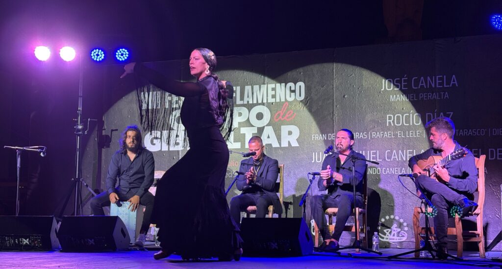 El broche final estuvo a cargo de Rocío Díaz, quien ejerció de anfitriona con presencia arrolladora sobre el tablao. Flanqueada por el compás de varios compañeros que le dieron alas desde el primer instante, la bailaora dejó claro —con su arte y dominio escénico— que el flamenco está muy vivo y late con fuerza en Tarifa y todo el Campo de Gibraltar.