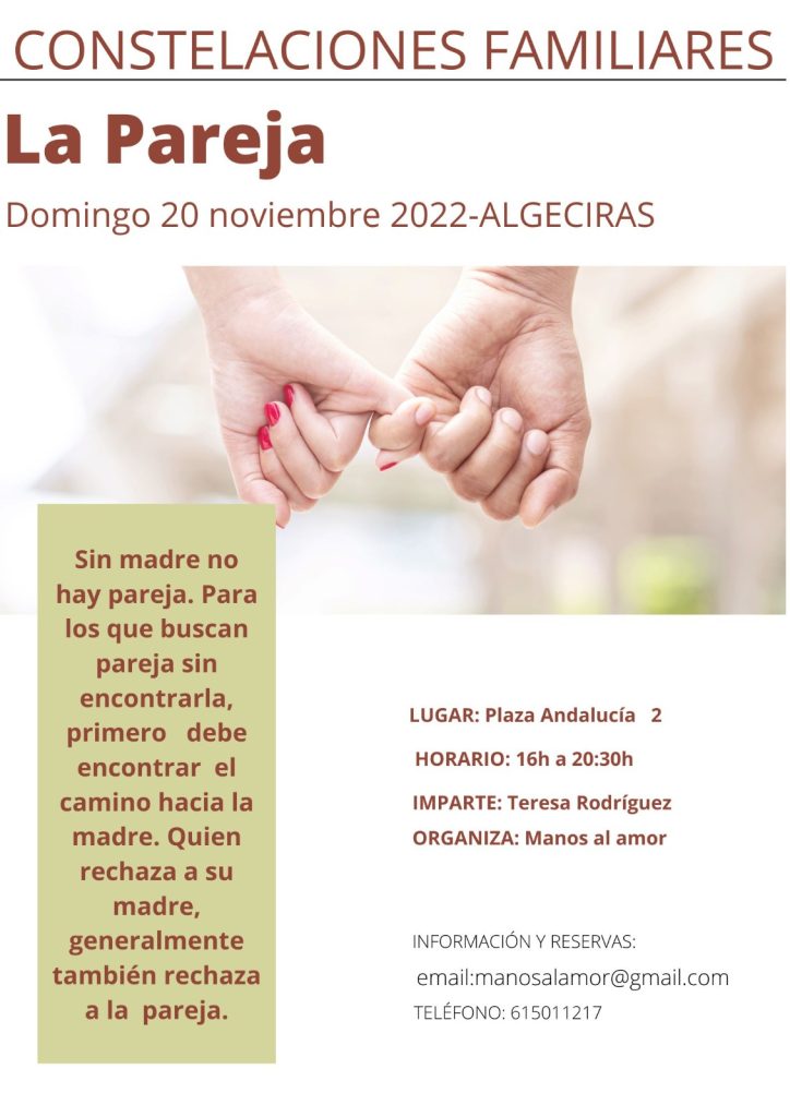 La Asociación Manos al Amor organiza el próximo 20 de noviembre, en Algeciras, un nuevo taller sobre constelaciones familiares que, en esta ocasión, girará en torno a La Pareja, su formación, consolidación y desarrollo.