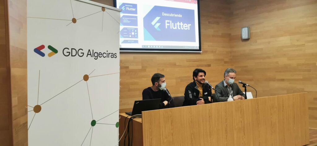 Junto a Pelayo estuvieron en la presentación Javier Guerrero y Chema Baeza, dos de los promotores del GDG Algeciras y organizadores de este evento, que en esta ocasión ha contado con dos ponencias. En la primera de ellas, que llevaba por título “Descubriendo Flutter”, alumnos del IES Saladillo realizaron una introducción a este framework de Google para el desarrollo de aplicaciones multiplataforma. La segunda de ellas, a cargo de alumnos del IFP Puenteuropa, bajo el epígrafe de “¿Un intruso en mi casa?” realizó un análisis de los riesgos de seguridad de las redes Wifi que todos utilizamos.