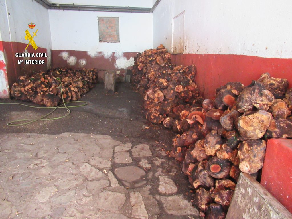 Las cepas de brezo son expoliadas por recolectores furtivos que las trasladan, mediante mulos de carga, hasta estos almacenes, donde las venden de forma irregular. La cantidad total de cepas halladas en los almacenes fueron 27.000 kilos, es decir, 27 toneladas. Actualmente, las cepas intervenidas por la Guardia Civil ya entregadas a la autoridad competente.