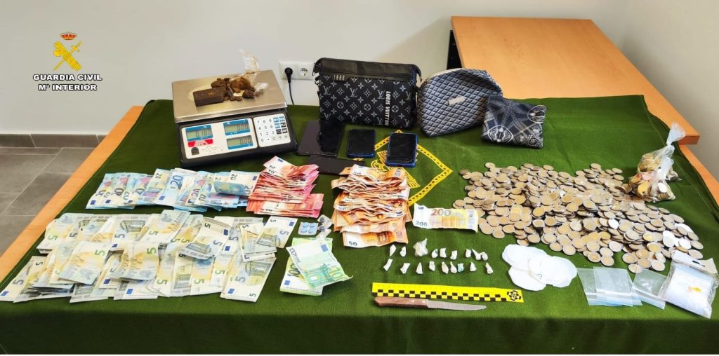 Durante el registro, han sido intervenidas numerosas dosis individuales de hachís y de cocaína, así como diversos instrumentos y envoltorios para preparar las dosis de las sustancias estupefacientes. Además, se ha incautado más de 5.000 euros de dinero en efectivo.