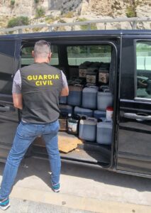 La Guardia Civil detiene a una persona con más de 600 litros de fertilizantes para plantaciones de marihuana en Tarifa 28 de mayo de 2025