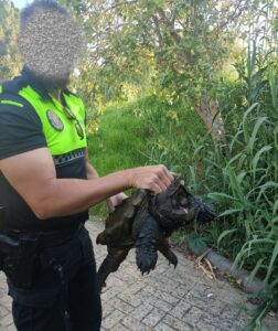 La Policía Local salva una tortuga caimán de quince kilos en el río Pícaro de Algeciras 28 de mayo de 2025