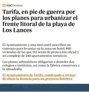 La prensa nacional señala los planes para urbanizar el frente litoral de la playa de Los Lances 16 de septiembre de 2024