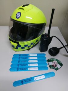 La Policía Local reparte pulseras identificativas para los más pequeños en la entrada al recinto ferial 21 de junio de 2022