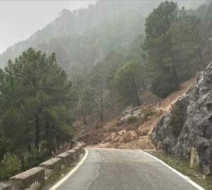 Cortadas un total de once carreteras de la red provincial en Cádiz por el temporal de lluvia y viento 27 de enero de 2026