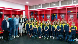 Triana Pérez y Daniela Gómez, las dos futbolistas algecireñas que han recibido la bandera de la ciudad 24 de enero de 2023